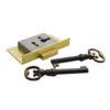 English two lever cabinet locks, each supplied with 2 decorative antiqued keys. Ideal for 3/4″ thick wood.