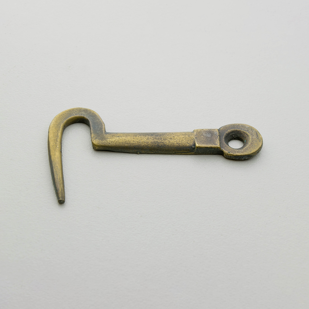 Copied from a well shaped flat back eighteenth century fastening hook. Our LD-H-13 is an appropriate eyelet to match.